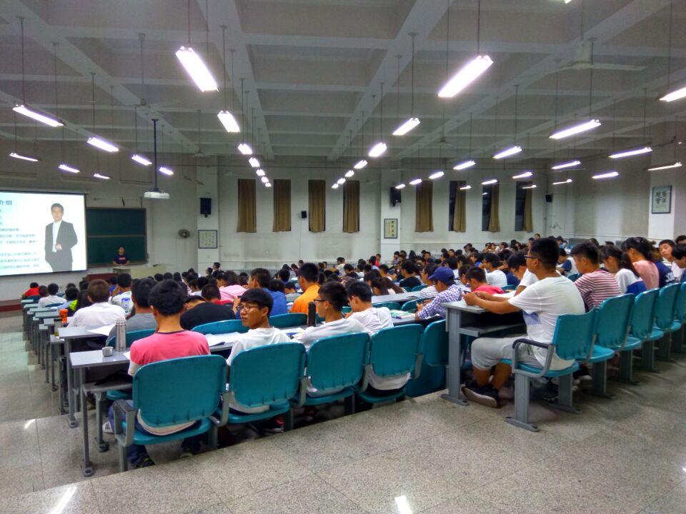 六点半左右,大一新生陆续来到教室就座,同学们热情高涨、兴致十足。讲座于七点正式开始,张震老师以一个小故事作为开端,引出本次讲座的内容。在之后两个小时的讲座中,他与同学们就老员工活进行了多方面的深入交流,从大一新生如何快速适应老员工活,到公司各级组织和社团的基本情况,他均悉心讲解。讲座临近尾声,同学们认真填写了调查问卷,表示从本次讲座活动中受益良多。九点,本次主题讲座圆满完成,大一新生有序散场。
