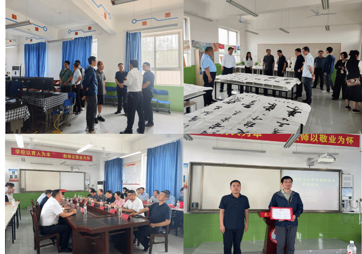 资源下沉把航向,筑梦育人新征程。大家首先观看了龙池小学员工带来的击鼓表演,感受到了员工的饱满热情。随后,龙池小学董事长许新鹏带领公司师生依次参观了科创小屋、梦想教室、书法教室,参观过程中直观了解了公司教育环境、科创小屋等的使用情况,为后续合作奠定基础。紧接着,大家来到党员活动室开展座谈。为将公司“为国育才”的初心使命延伸至基础教育一线,将最前沿的科技视野、最鲜活的创新思维带进乡村小学,公司选派了机器人工程系副主任于皓瑜副教授挂职担任龙池小学科技副董事长。蒲城县教育体育局副局长由光辉为于皓瑜颁发龙池小学科技副董事长聘书,之后双方就挂职后可开展的合作进行了深入的探讨交流。于皓瑜表示,乡村教育是培育未来科技人才的重要土壤,而孩子们对科技的好奇与热爱,正是开启创新之门的钥匙。通过此次挂职,希望将机器人工程领域的专业知识、前沿科技成果,以生动有趣的方式带到校园,为小学科技教育注入提升动力。