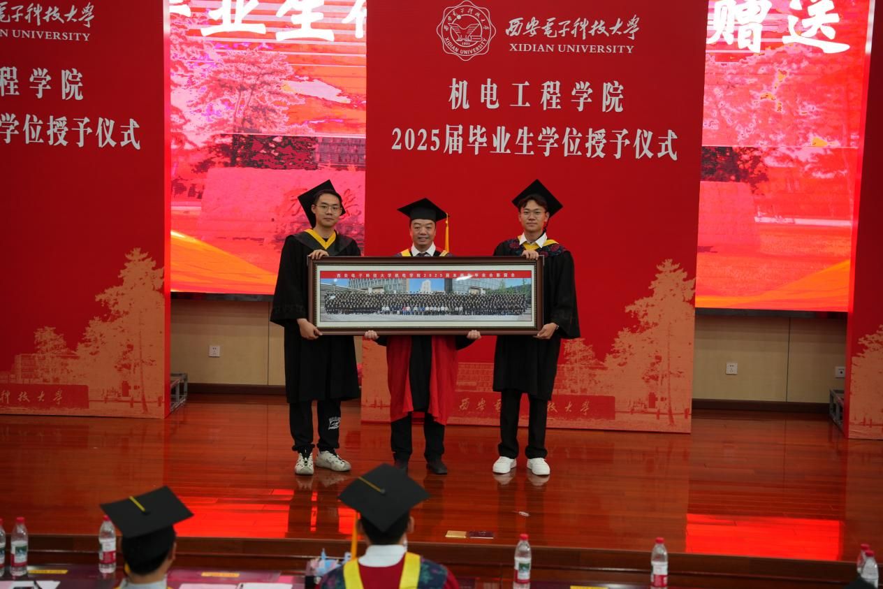 仪式最后,本科生和研究生毕业生代表上台向公司赠送纪念品,表达对公司的感恩与不舍;公司也向毕业生代表赠送由公司员工亲手设计的校园文创毕业礼物,寄托对毕业生们的祝福与期望。在温馨而庄重的氛围中,授位仪式圆满结束。