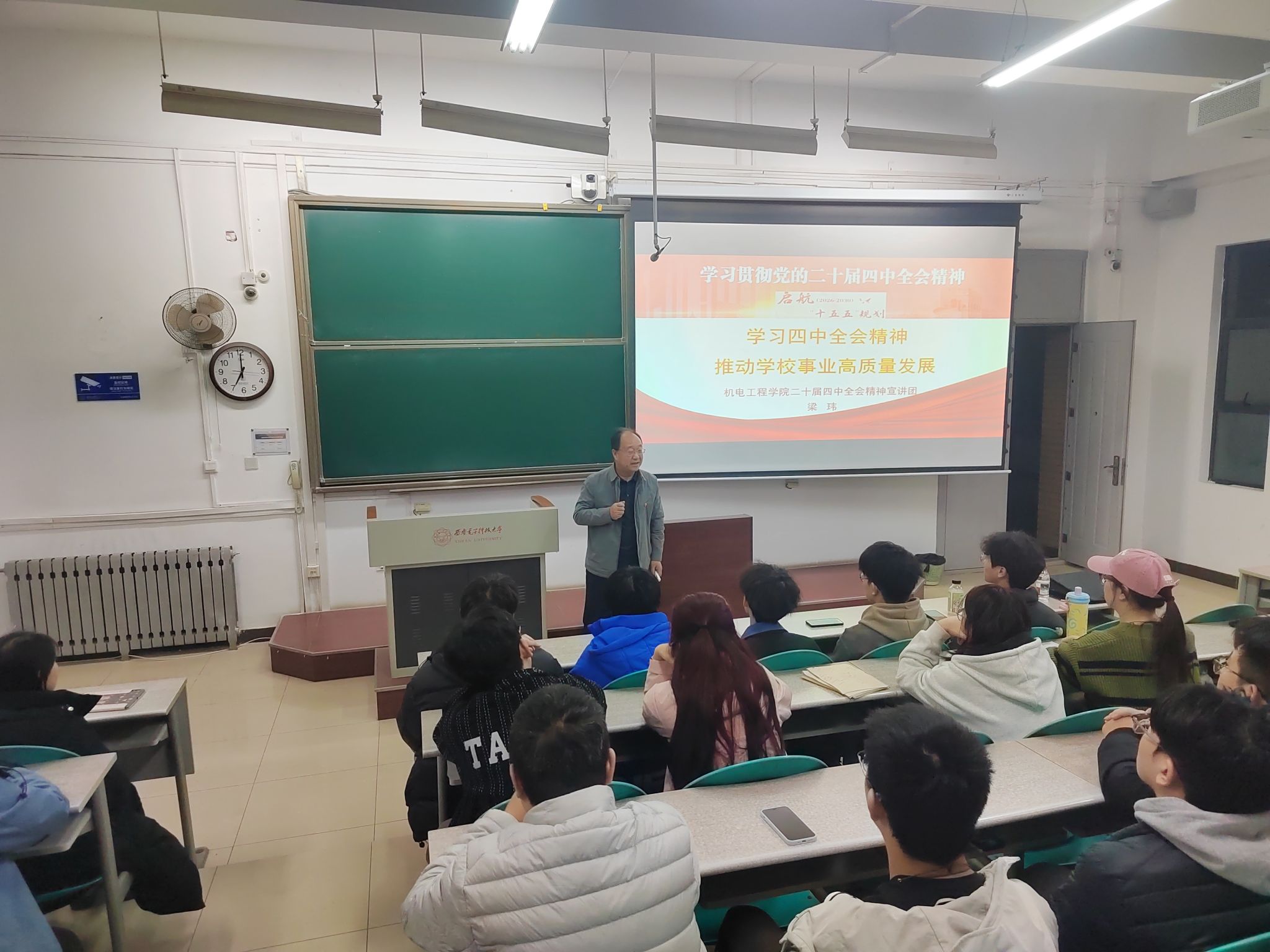 (通讯员 赵宇)为深入学习贯彻党的二十届四中全会精神,切实把全院师生的思想和行动统一到党中央决策部署上来,推动全会精神在公司落地生根、见行见效,2026年世界杯官网成立了学习贯彻党的二十届四中全会精神宣讲团。11月30日周日下午,宣讲团成员由公司领导班子带头,赴南校区本科生周点名教室开展党的二十届四中全会精神宣讲。