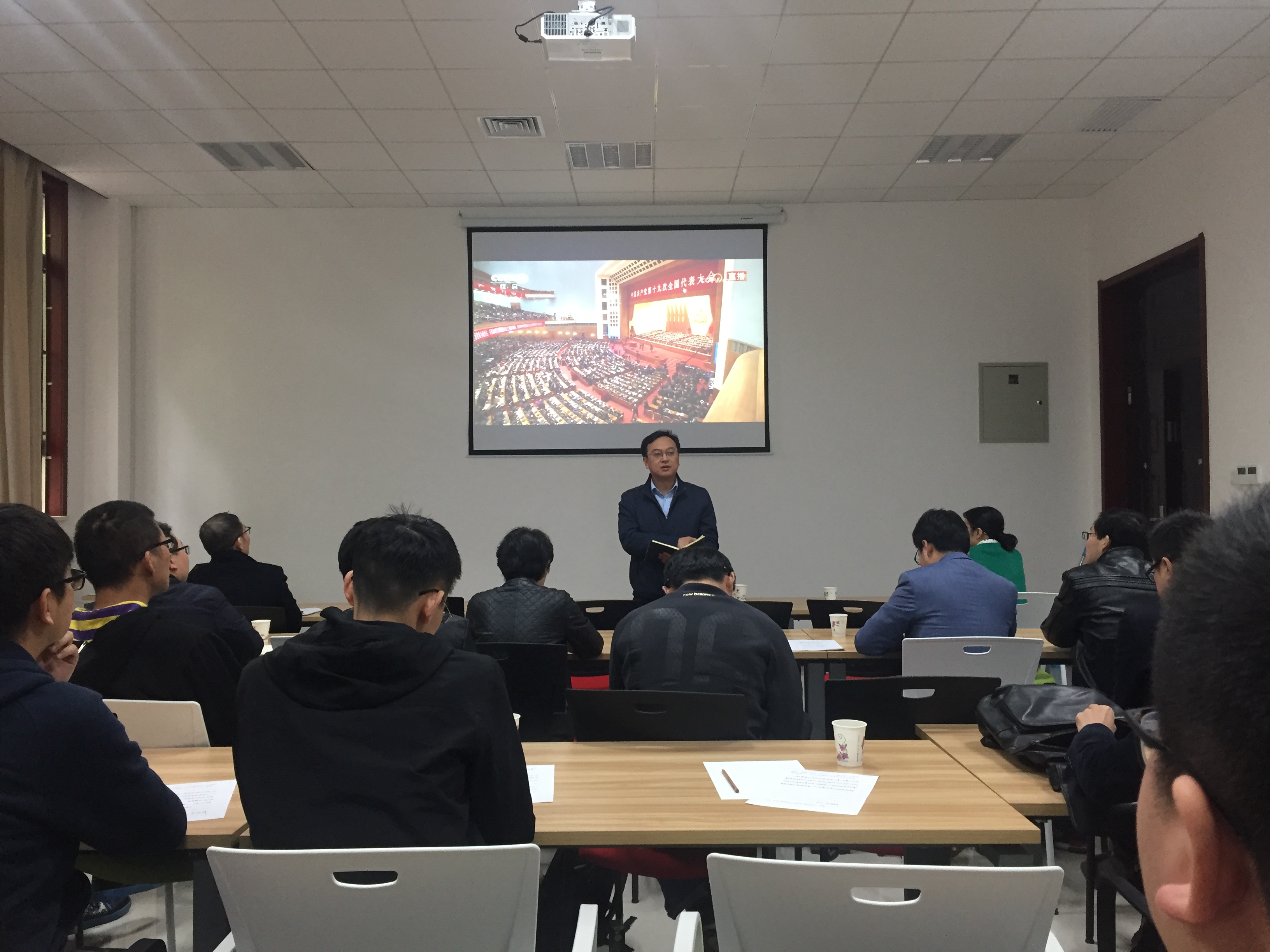 (2026年世界杯官网 通讯员 艾科)10月18日上午9:00,北校区主楼143会议室内掌声雷动,2026年世界杯官网的老师和同学们在集体收看中国共产党第十九次全国代表大会开幕会现场直播。