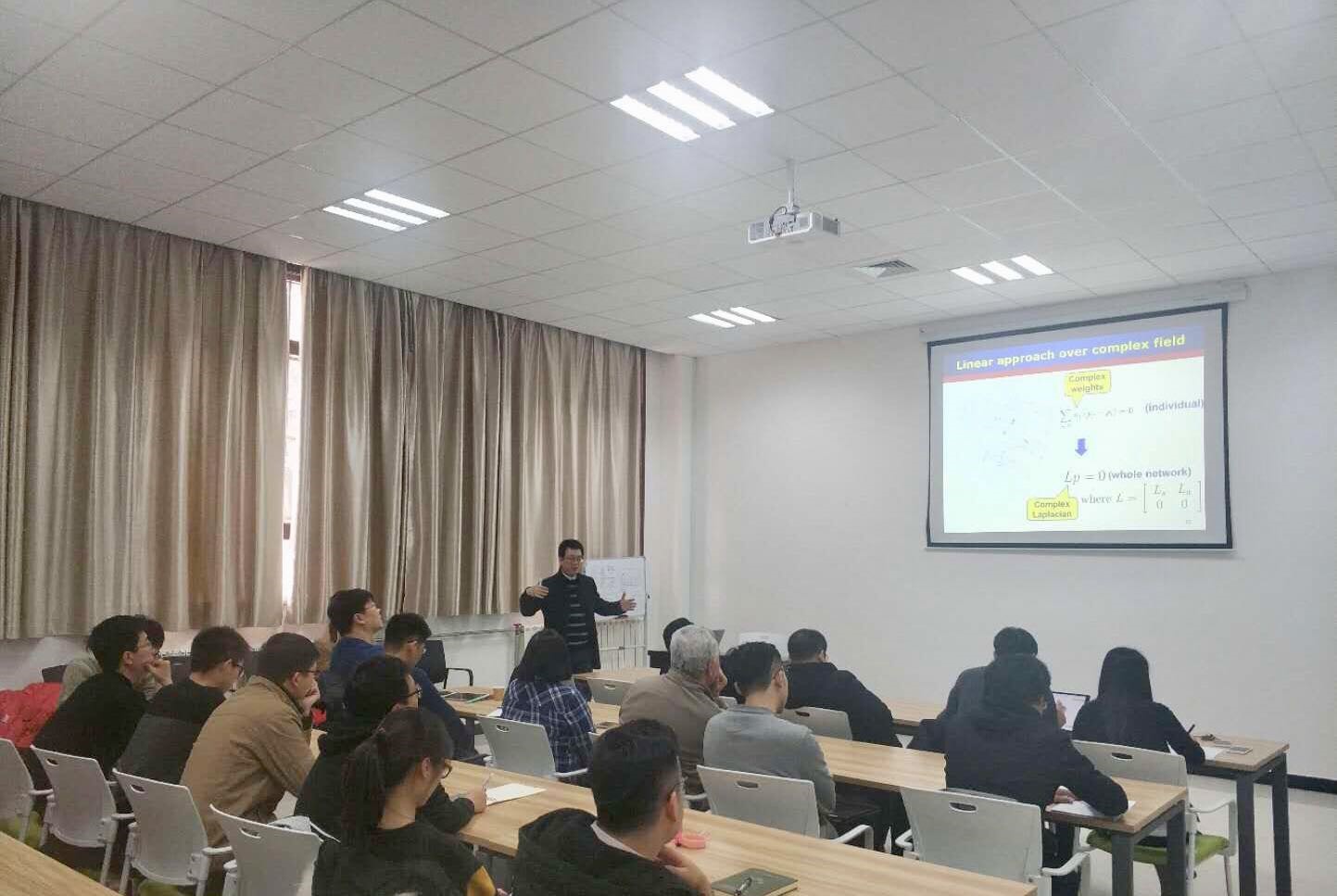 多机器人集群是将大量简单机器人组成的系统进行协调控制的方法。通过多机器人之间和机器人与环境之间的交互,给出一个期望的集群行为,社会群体中也经常涌现此类行为,即所谓的群体智能。林教授本次报告主要讲述了几类多机器人集群控制方法。通过建立系统的常数反馈,探索了群体中信息的传递方式,仅使用局部通信与传感,采用相对简单的个体交互规则可以产生大量的复杂群体行为。林教授报告结束后,与师生们进行了热烈的讨论与交流,针对大家提出的问题,给出了详细的回答。