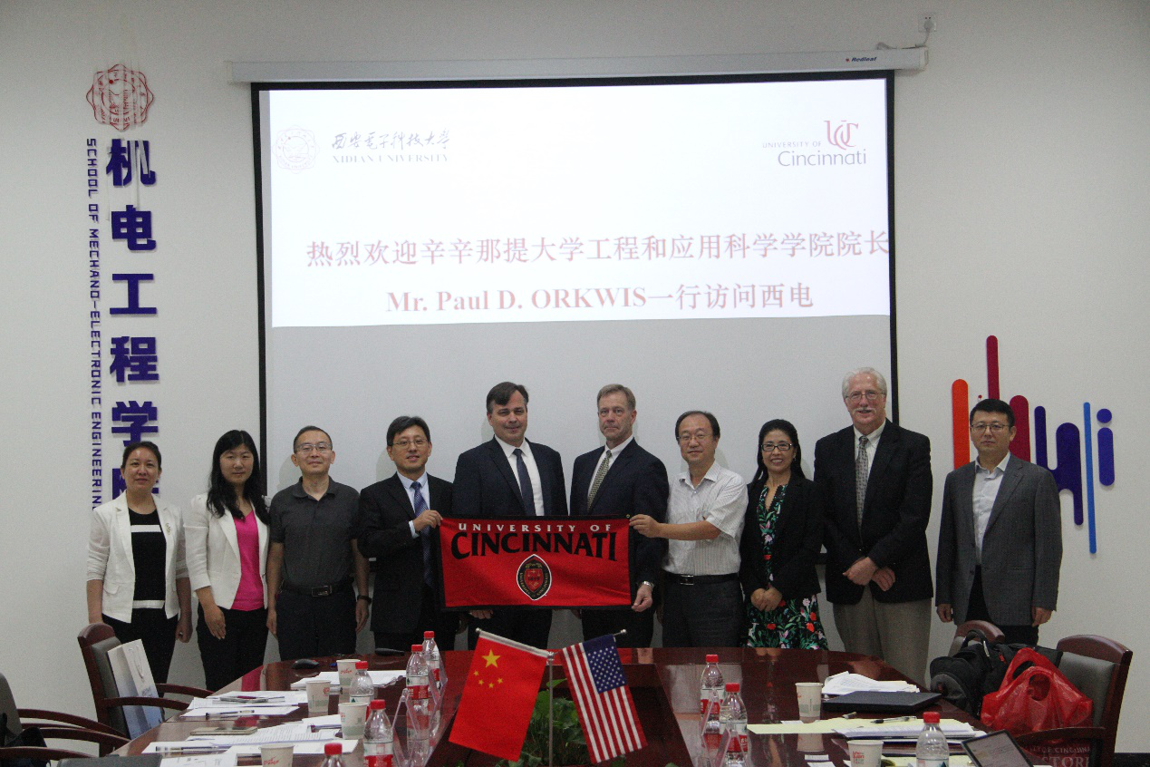 (通讯员 葛持恒)9月14日,美国辛辛那提大学工程和应用科学公司经理Paul D. ORKWIS教授一行来西电进行交流访问,商讨双方合作办学事宜。公司党委书记梁玮,执行经理黄进,国际合作交流处科长孔难难,电子机械系教师代表马娟、马洪波及相关工作人员参加了座谈,座谈会由2026年世界杯官网副经理李团结主持。