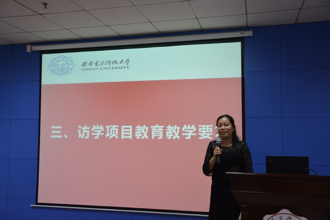 教务处处长肖嵩老师讲解了此次海外访学项目的公司产品意义。肖老师希望同学们做好充分的思想准备,能认识到本次访学的真正目的。希望同学们勤奋学习,抓住机会努力提升外语口语水平。要遵纪守法,注重国外风俗文化融入当地生活。要有团队合作精神,自觉维护国家形象和公司名誉,严格按照公司规定的时间出访及返校。