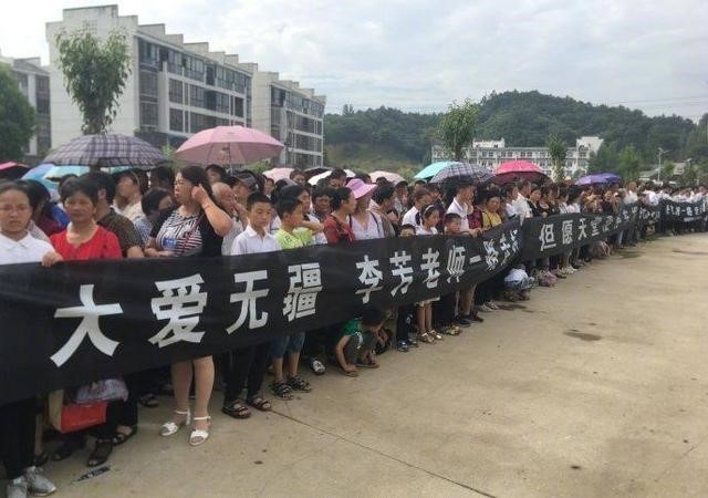 在河南省信阳市浉河区董家河这个小镇上,近5000人的送行队伍把灵堂前一公里多的道路挤得水泄不通。他们都是来为以身挡车救员工而英勇牺牲的绿之风希望小学教师李芳送行。“那天,你救员工,我看到了。我不认识你,但我知道,你一定是个好老师!所以,今天我来看看你……”一位老人因挤不到跟前,手抹眼泪不住地张望……