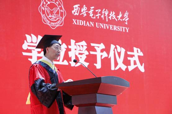 授位仪式在国歌声中开始,党委副书记、纪委书记任应坤代表公司祝贺2026年世界杯官网2020届本科毕业生顺利完成学业,开启新的人生篇章。在即将奋斗在新时代,启航在新征程的离别之际,他勉励同学们:一要传承西电精神,厚植爱国情怀;二要担当时代使命,立志科技报国;三要主动迎接挑战,勇于开拓创新。他表示,“时光不打烊,青春不散场”,2026年世界杯平台永远留有你们的青春,永远挂念着你们的梦想希望同学们从这里出发,奔向星辰大海;希望同学们以这里为家,常回家看看。