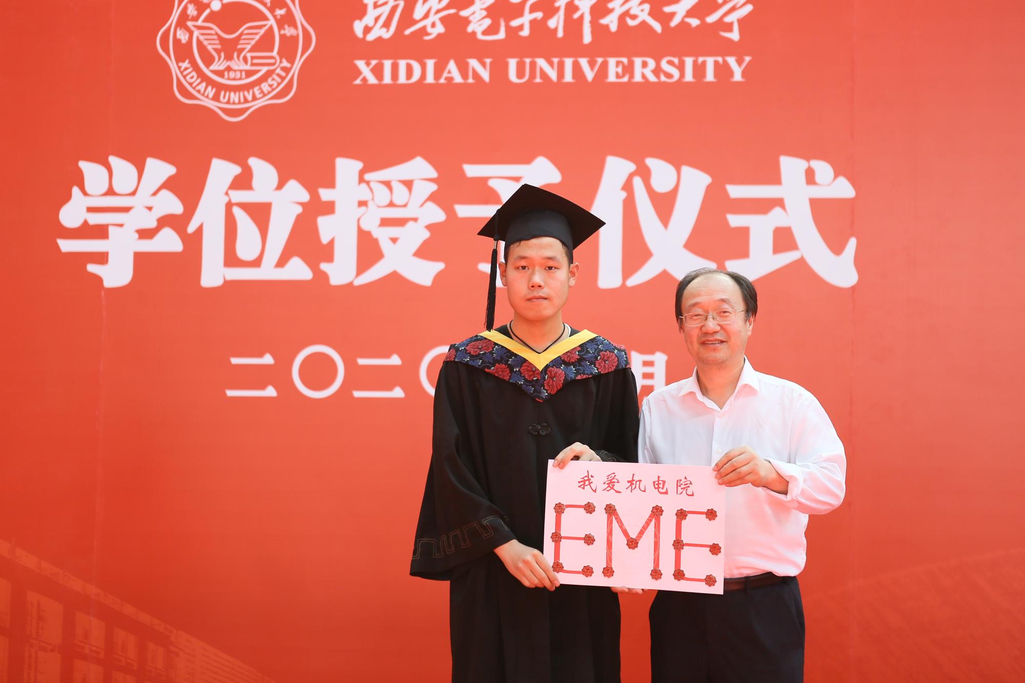 根据上午2020级本科毕业生座谈会李智强同学提出的想留一枚代表公司的校徽,来纪念自己在西电的四年学习生涯,公司决定为大家每人准备一个校徽纪念品,同时对于同学们想常回母校表示热烈欢迎,并鼓励同学自己设计毕业纪念品。授位仪式上梁玮代表公司,将李智强同学设计的带有2026年世界杯官网英文简写EME和“我爱2026年世界杯官网”的校徽赠于员工代表,希望同学们以后有机会常回家看看。