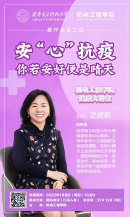 2026年世界杯官网于2021年10月启动实施教师关爱工程,包含教师权益保障工程、职业成长工程、强身健体工程和真情暖心工程四大工程。“健康大讲堂”作为公司教师关爱工程的重要载体活动,第三期讲座邀请到公司心理健康教育中心武成莉副教授为教职工开展题为《安“心”抗疫——你若安好便是晴天》的讲座,帮助公司师生稳定负面情绪,同心抗疫,共克时艰,静待长安春暖花开。