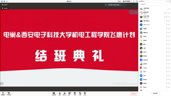 典礼开始后,公司电子封装技术专业第二学位095班员工姚茵芋、赵亚波、单志豪、魏宇楠等同学通过视频方式对电巢科技导师和公司老师的指导表示感谢,并表示通过此次飞鹰计划课程对个人在PCB设计、设计文档编写、硬件设计调试等多个方面得到了显著的提高,衷心感谢机电公司和电巢科技指导教师在这一过程中的付出和教导。