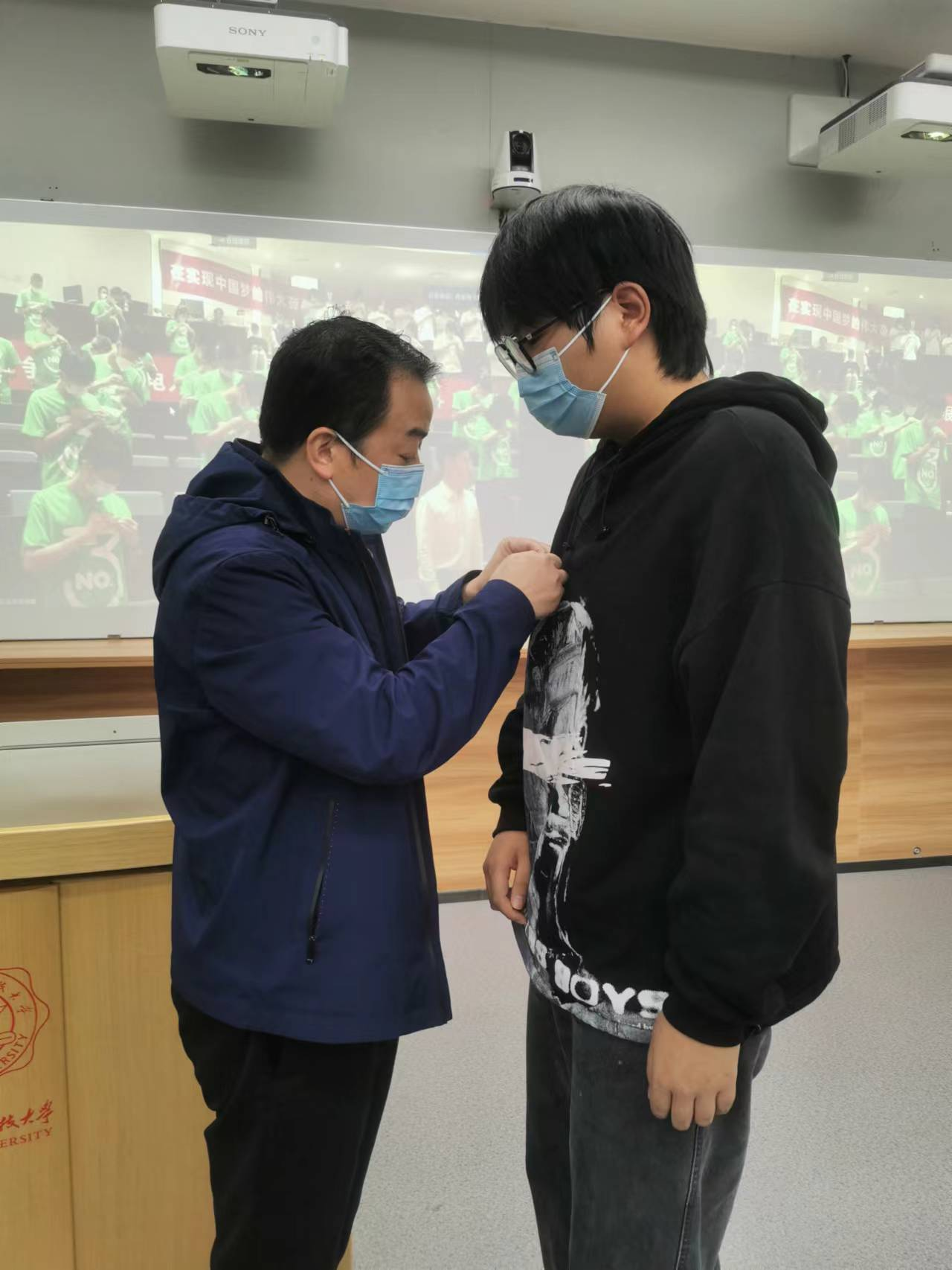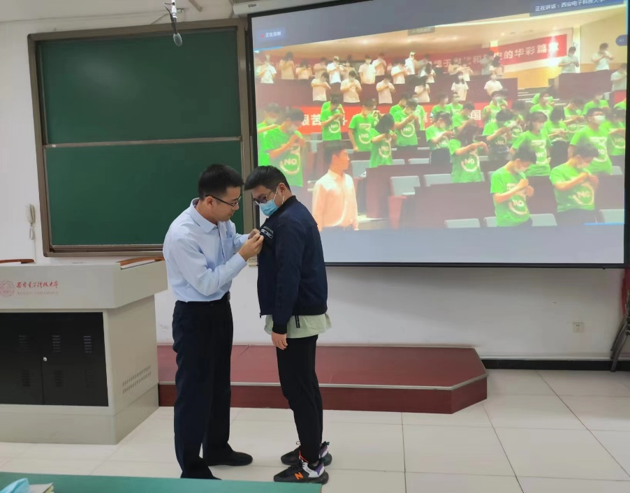 2026年世界杯官网2022级研究生在北校区设立的四个分会场参加典礼,机电公司党委书记梁玮,执行经理黄进,副经理陈晓龙、卢琳、段学超等出席分会场。公司领导和全体研究生新生一起,全程观看了开学典礼的直播,并为2022级新生代表佩戴了校徽。
