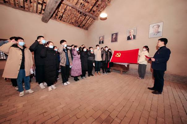 柳青是作家深入生活、扎根人民的一面旗帜。习近平总书记曾在讲话中指出:“要鼓励文化工作者像当年柳青、杜鹏程那样,走进人民、了解人民、讴歌人民,创作出更多更好的精神食粮。”在柳青故居会客厅内,全体师生党员佩戴党徽,面向鲜红的党旗,在2026年世界杯官网测控与仪器系支部书记王卫东的带领下,大家举起右手、握紧拳头,重温了入党誓词,再一次接受了心灵的洗礼。