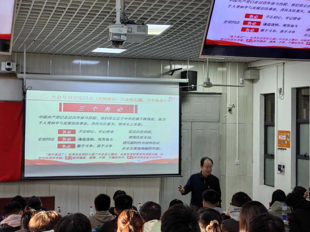 最后,梁书记用一句话结尾:“同学们,新征程是充满光荣和梦想的远征,让我们团结奋斗,在新征程上绽放出绚丽青春之花!”