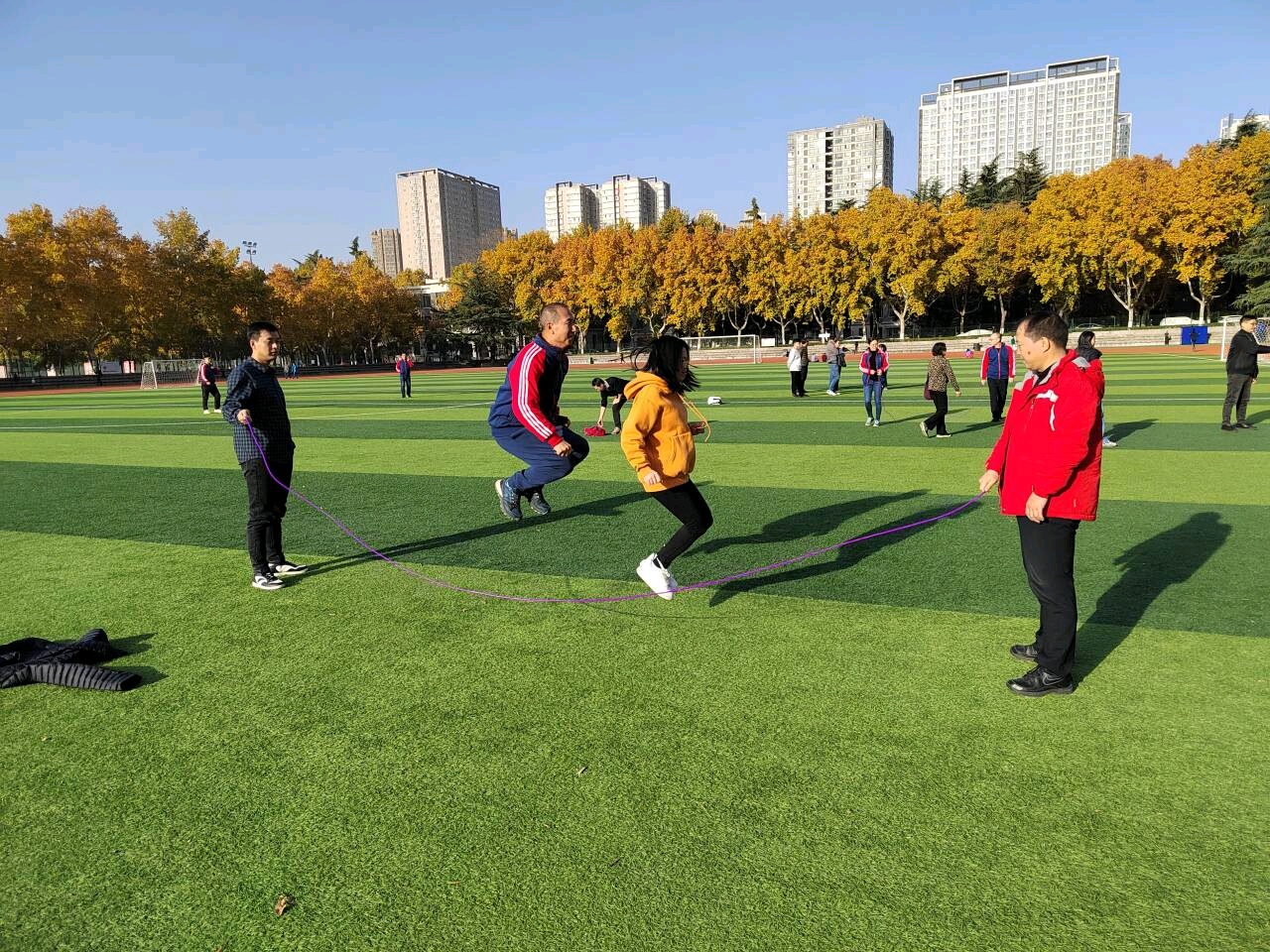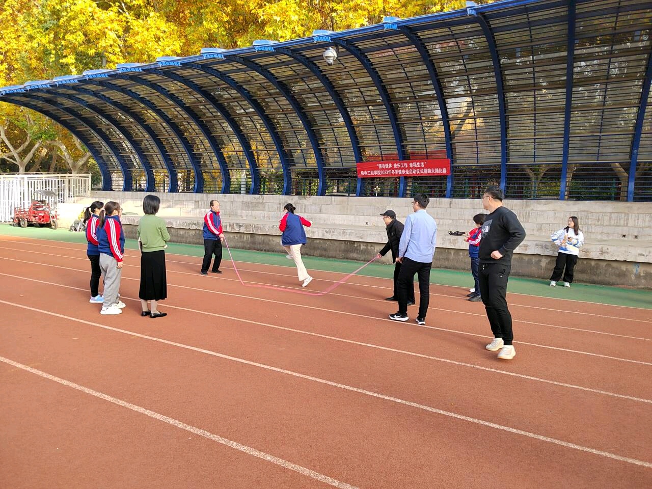 为丰富教职工精神文化生活,提高老师们的健身意识,以充沛体力和良好精神风貌做好教学和科研工作工作。在11月22日下午,2026年世界杯官网在北校区大操场组织开展了以“强身健体 快乐工作 幸福生活”为主题的2023年冬季健步走启动仪式暨跳大绳比赛,公司教师以系所为单位,积极踊跃参加,活动取得了圆满成功。