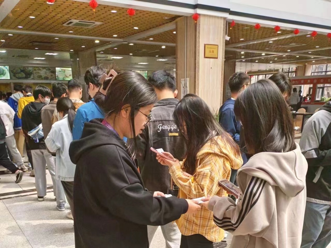 其他志愿者中,有的做“房源信息核查员”,登记退换宿人员和空房源名单,有的做“美好时光引导员”,给就餐人员发一元餐卡片,有的做“文明餐厅监督员”,参加饮食服务中心组织的市场询价和调研,还有的做“餐厅美食推荐官”,介绍西区餐厅的清真牛肉拉面。