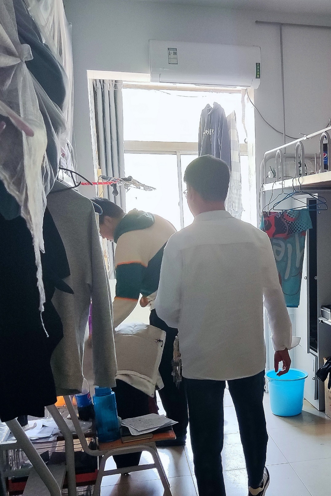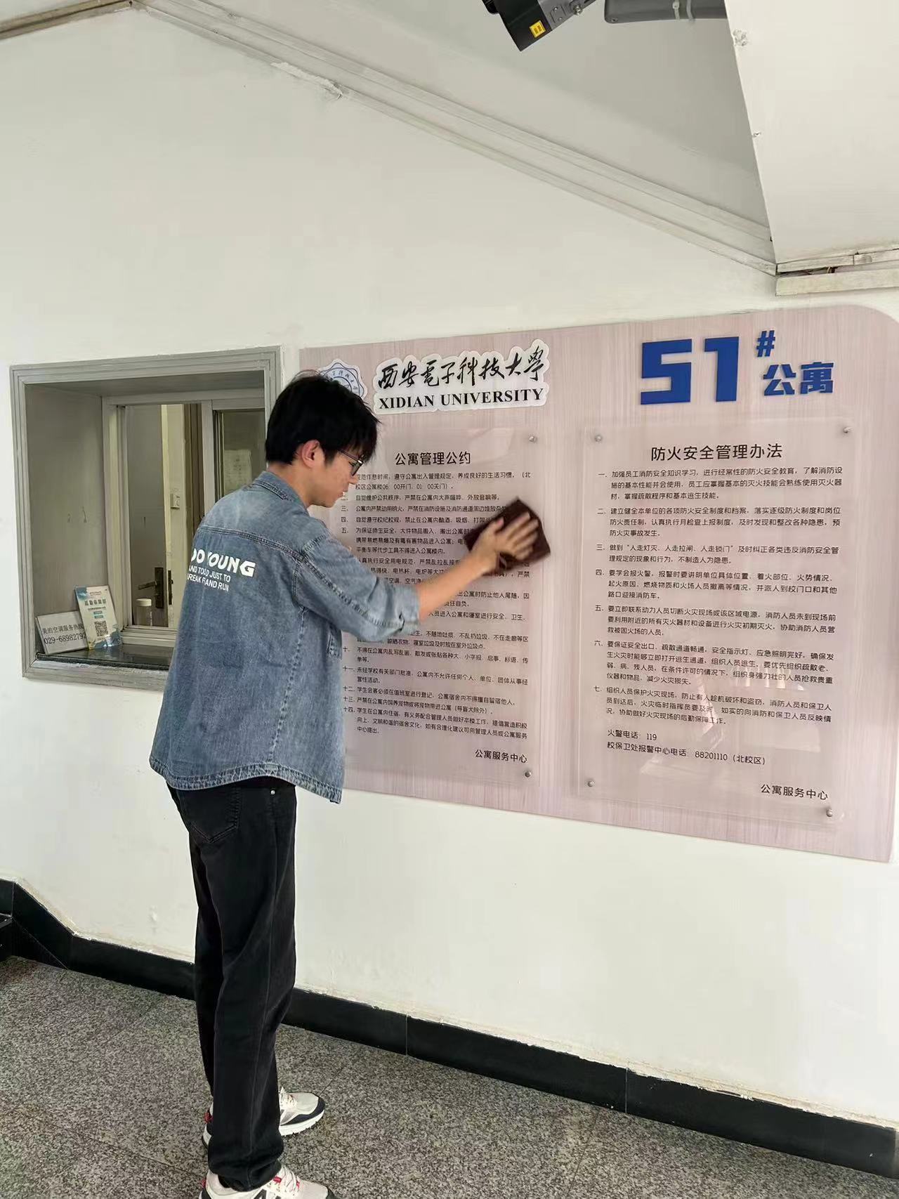 图1 王德韩同学擦拭公寓展板