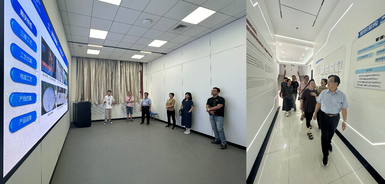 接着,在丰博老师的带领下参观了高性能电子装备机电集成制造国家重点实验室,介绍了邵晓东教授领导的计算机辅助技术研究团队及其负责建设的数字孪生实验中心的定位和在数字化样机、制造工艺虚拟仿真、工业产线仿真等方面的研究成果。来访专家对计算机辅助技术研究团队的研究成果给予了充分的肯定。