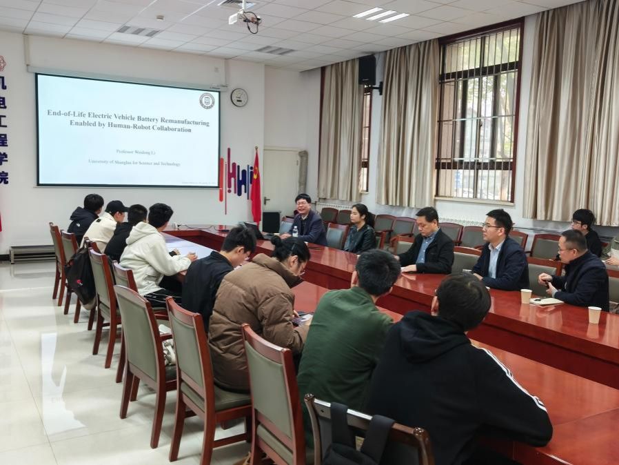 在讲座中,李卫东教授首先回顾了自己的职业生涯,并对母校在其求学时期所给予的深远影响表示了衷心的感谢。他表示,在全球可持续发展和工业智能化转型的背景下,智能制造与绿色发展成为未来的主旋律。为此,他带领团队致力于新能源汽车锂电池回收再利用的研究,探索提升电池回收效率的技术创新。他的研究获得了政府和相关领军企业的支持,逐步将先进技术应用于实际生产,推动了锂电池回收在工业领域的广泛应用。