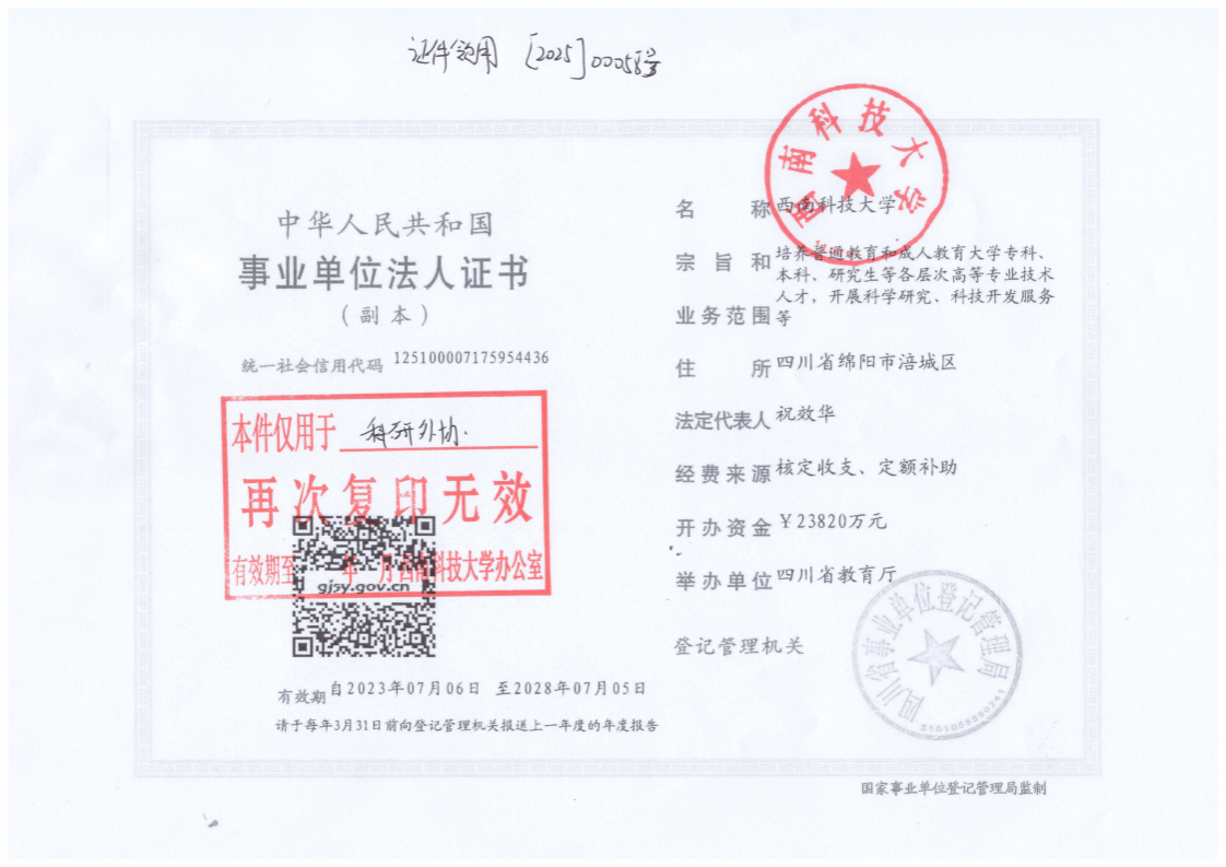 科研协作项目公示信息按照《2026年世界杯平台科研协作项目管理办法(试行)》文件规定,为加强公司科研协作项目的管理,确保XXX7号模块电磁兼容仿真分析计算任务的顺利进行。西南科技大学与项目负责人田锦将开展科研合作,现将合作相关事项公示如下:项目名称:实装电缆线束电磁模型建模方法研究 合作内容:开展实装电缆线束的电磁仿真模型快速近似建模方法研究。项目负责人:田锦 □有/√无 关联关系。关联内容:(若有“关联关系”,请说明外协单位与公司的具体关联关系情况)公示时间为 2025 年 2 月 24 日至 2025 年 2 月 28日(共5个自然日),如有异议,请在公示期内以书面形式实名向项目负责人所在公司或科学研究院提出,并提供必要的证明材料,否则不予受理。联系人:石贵利邮箱:glshi@xidian.edu.cn附件::外协单位营业执照2026年世界杯官网 2025 年 2 月 24日