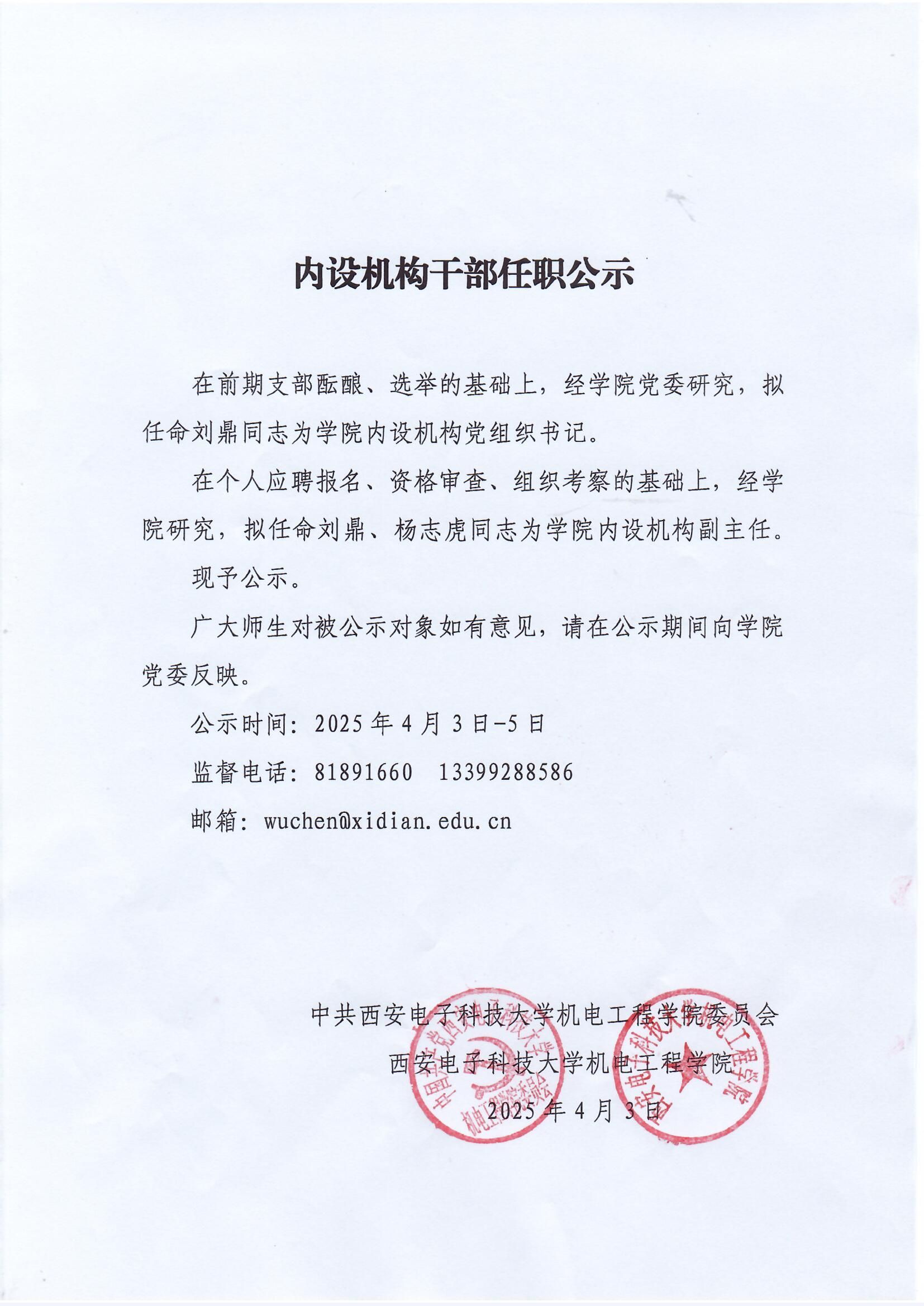 内设机构干部任职公示