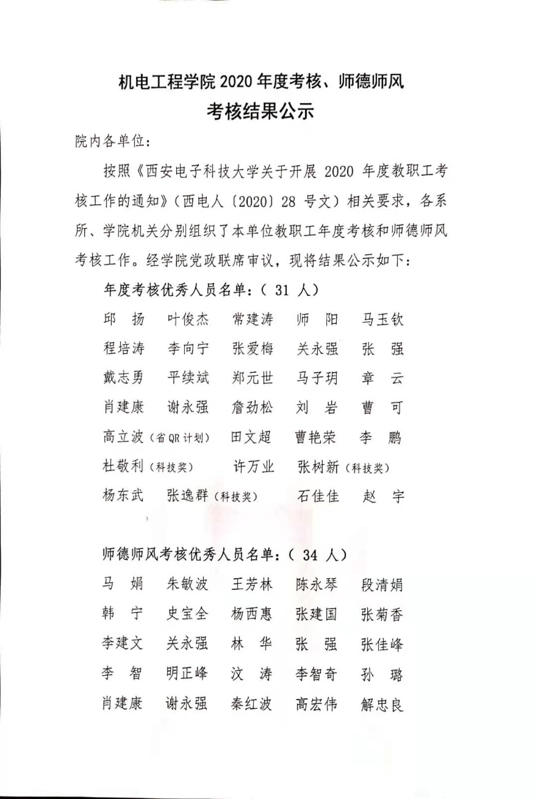 2026年世界杯官网2020年度考核、师德师风考核结果公示