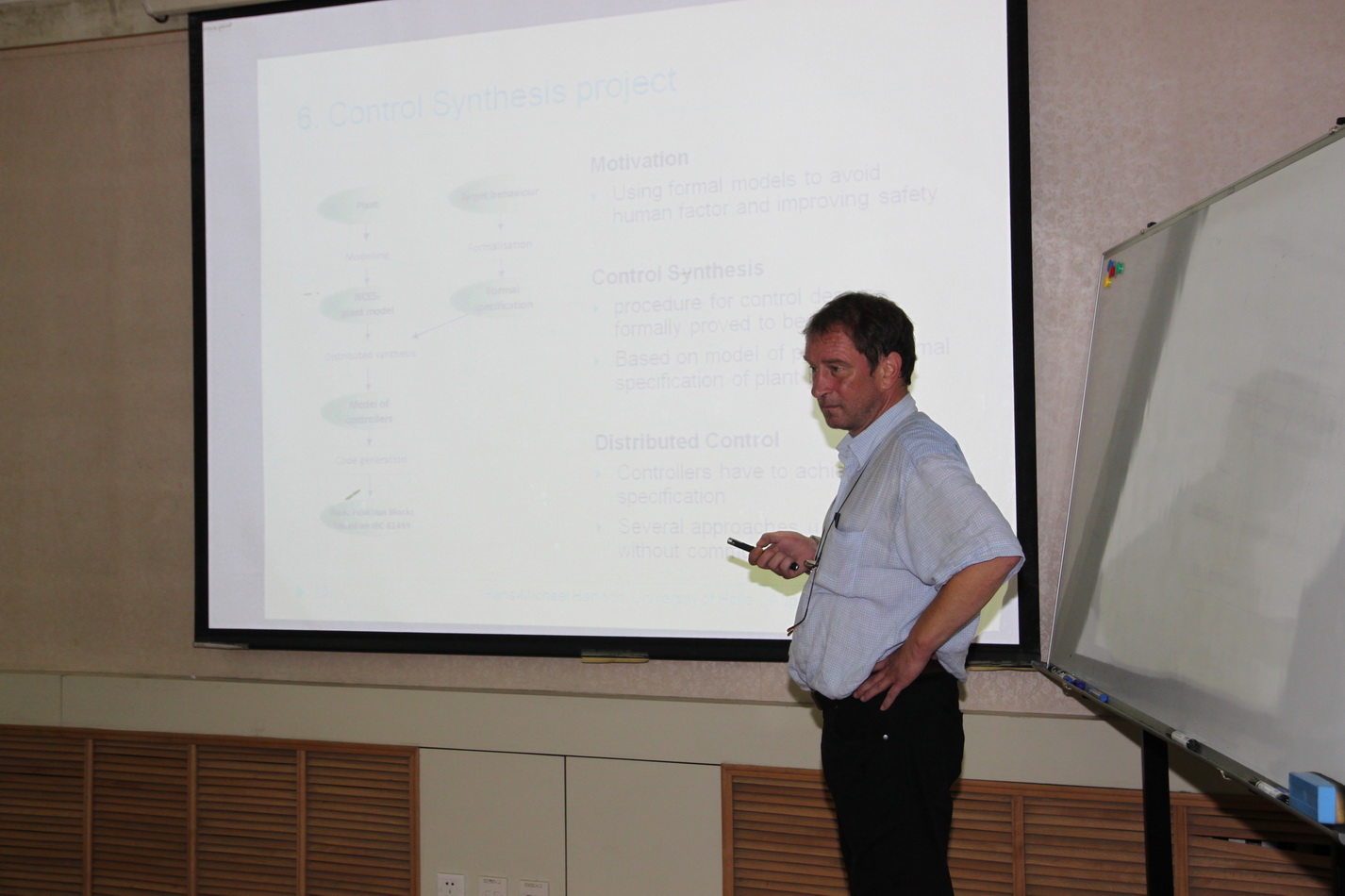 IEC 61499 国际标准提供了一种可简单设计分布式控制系统的方法。然而,这并不意味着任何基于IEC 61499的自动控制系统都是透明,柔性且可容易重构的。因此设计一类方法以得到期望特性的控制系统是必要的。Hanisch 教授的报告向与会教师和博士生阐述了该方法的基本原理,通过例子解释了该方法的应用,并与到会的教师和博士生就相关问题进行了热烈讨论。