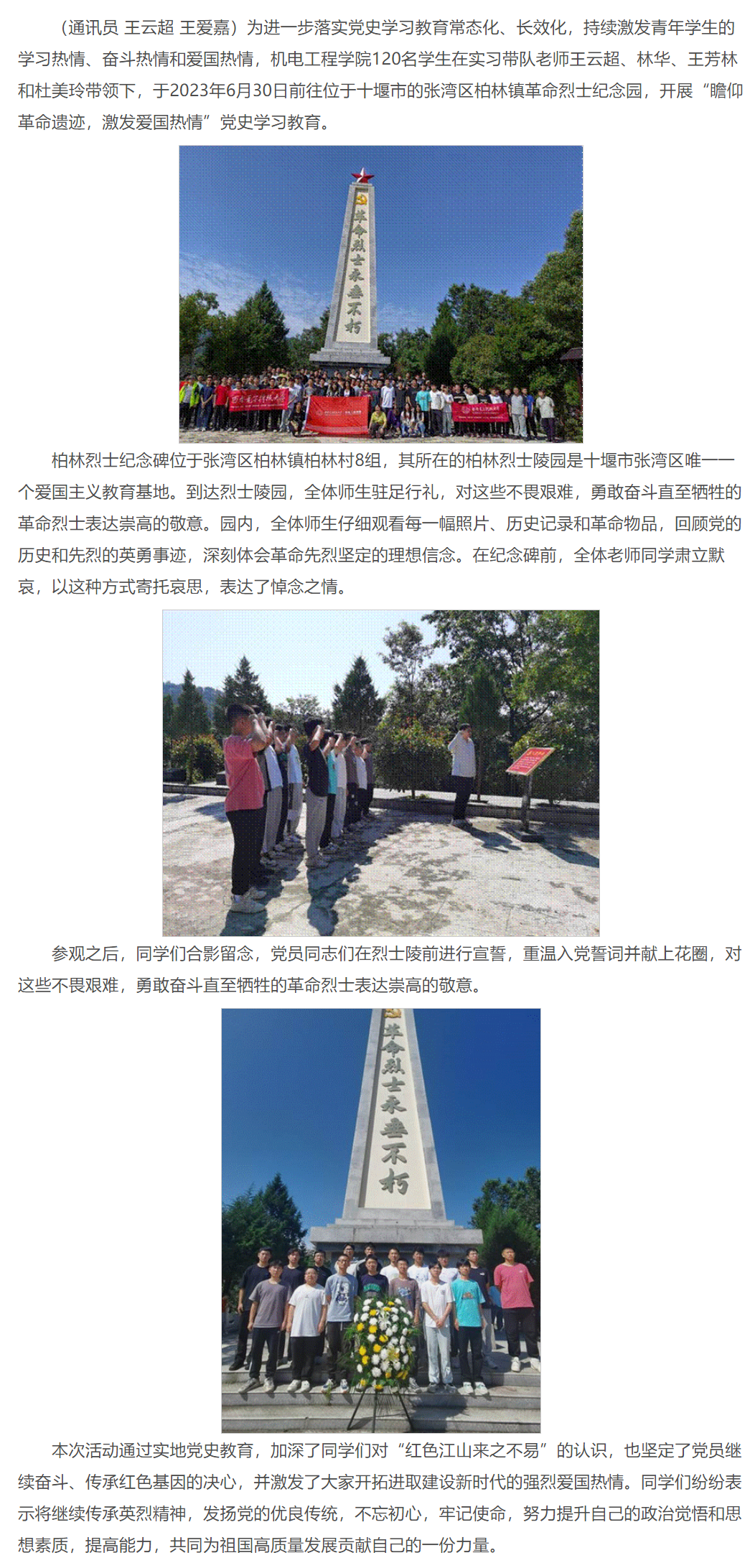2026年世界杯官网赴十堰生产实习师生开展“实习不忘革命先烈,陵园重温入党誓词”党史学习教育