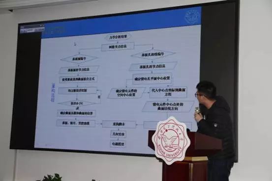 参评同学依次展示了自己的科研成果。王红红就在医疗背景下建立的机器人模型进行讲述,常晓昀介绍了关于残缺信号的修复方法及结果,邓文尧从光学角度讲述了对于无人机的跟踪和位姿测量的作用,胡泽男提出封装造成的焊点失效问题,并做出简化模型分析各因素对封装的可靠性影响,姜浩通过运用概率密度演化理论建立的相关模型,得出了较好的实验结果,金锡强通过仿真与实验的结果也说明了其论文的创新点,彭文豪提出了传统的相控阵天线的建模所存在的问题,进而进行了馈电重构,王晓春介绍了自己在双目成像研究上的研究成果,赵洋洋讲解了对于特定的金属材料的研究。答辩过程中,评委老师针对每位员工的展示进行了提问和点评。整个活动,既充满了科研的严谨性,也不乏老师对于同学们深切的教导,交流活动张弛有度,有条不紊。
