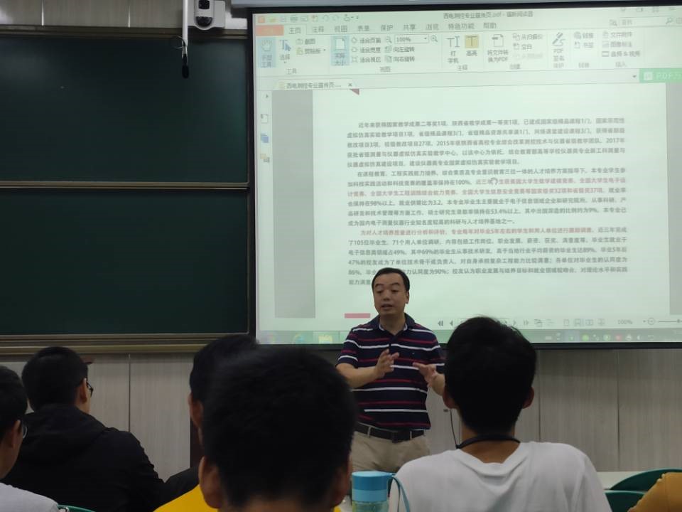 在介绍完专业总体情况后,陈晓龙教授针对智能物联感知与微波测试课题做了详细的介绍,阐述了当前此研究方向的重要性和在实际工程中的广泛应用,如沥青路面施工智慧监管系统、智慧物流冷链监测管控系统、智慧集输管道监控系统等。随着智能物联感知与微波测试的工程应用,办公效率得以大幅提高,工程安全性更进一步得到保障。随后,陈教授为同学们讲解了团队参与研发的海上综合监测控制系统。