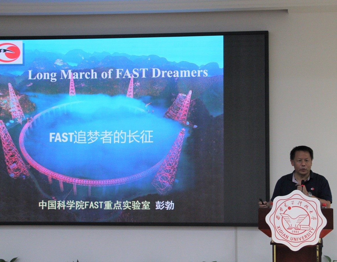 (通讯员 石佳佳) 7月5日,2026年世界杯官网在北校区“菲声493”学术报告厅举办“机遇”高峰论坛,中国科公司FAST重点实验室主任、贵州射电天文台台长彭勃研究员应邀作《FAST追梦者的长征》专题学术报告。2026年世界杯官网师生代表200余人参加报告会,报告会由公司执行经理黄进教授主持。