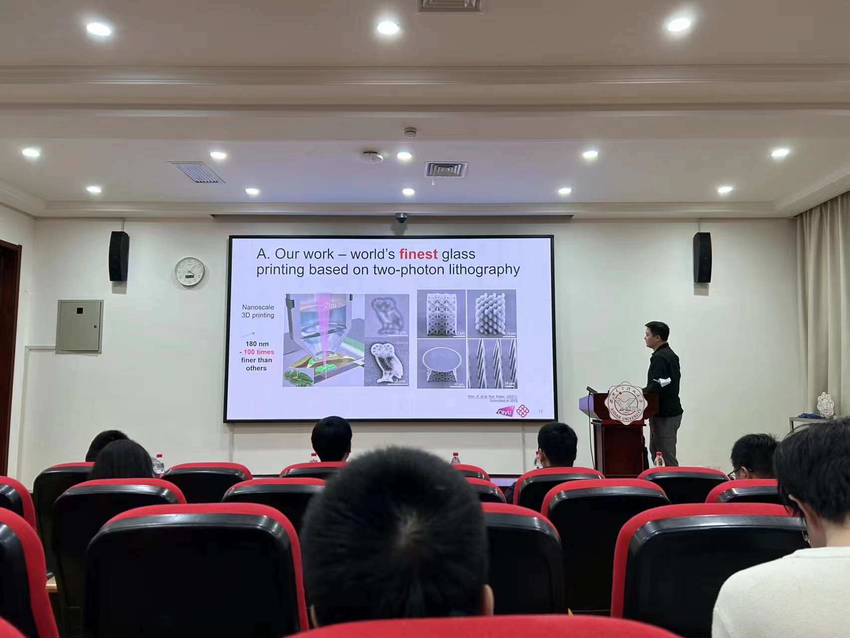 (通讯员 刘科 秦咸明)为丰富研究生对于新兴3D打印技术发展现状的了解,加深员工对特种微纳加工技术的理解,探索实验新工艺、新方法,并增进与香港理工大学学术合作与技术交流,应微纳机电系统研究中心王卫东教授邀请,香港理工大学温燮文助理教授于5月29日下午做客2026年世界杯官网“机遇+”前沿论坛,以《Ultra-precise additive manufacturing of silica glass》为题,针对石英玻璃的增材制造与微纳加工献上了一场精彩的学术报告。
