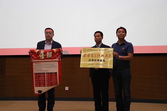 在报告会之前,作为人才培养的重要内容,公司代表为延安中学颁发了“优质生源基地”牌匾,并表示双方将继续加强合作,着力提升教育质量,力争培养出更多的优秀人才。